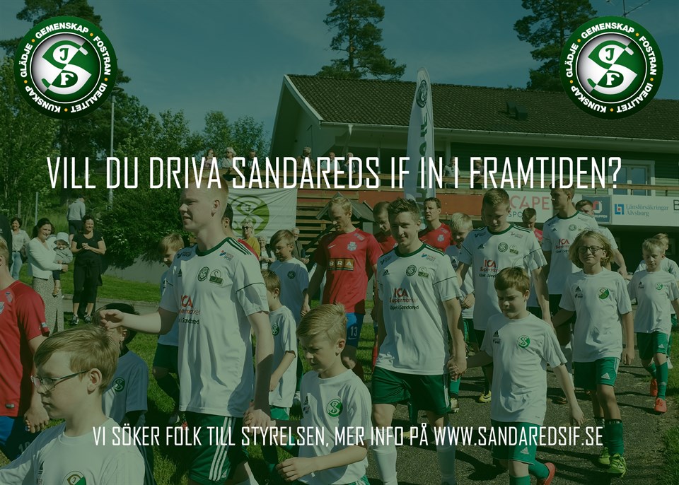 Det blåser positiva vindar i Sandareds IF. Fotbollsorganisationen växer, medlemsantalet ökar och barn- och ungdomsfotbollen är i en expansiv fas. Därtill början en padelverksamhet träda fram ute i Sandevi Padelhall vilket gör att man med fog kan hävda att Sandareds IF har en mycket spännande framtid tillmötes. Vill du vara med på resan? Vill du påverka föreningens riktning in i framtiden? Sandareds IF är en ideell förening som är beroende av engagerade personers insatser. Till årsmötet den 23/2 söker vi kandidater till föreningens styrelse. Är du intresserad, eller känner någon som skulle passa in hos oss? Tveka inte att höra av er! Kontakta Kenth Wall på 0705-42 05 48 eller kansli@sandaredsif.o.se