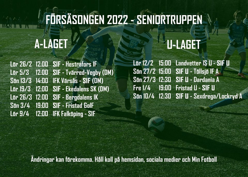 I måndags drog äntligen A-lagets försäsong i gång med fotbollsträning på Sandevi. - Kul att vara i gång igen, det har vi längtat efter, berättade Dime Mencevski efter träningen. Mencevski, som under 2021 gjorde sin första säsong som huvudtränare för seniortruppen, har fortsatt förtroende under 2022, tillsammans med övriga ledarstaben. Pavel Aso och Ulf Wall är båda kvar från fjolåret. - Det var en bra träning med mycket positivitet bland grabbarna. Lite ringrostigt får man räkna med men det släpper snart. I dagsläget är vi runt 25 spelare och har likt ifjol en bra mix på ungt och rutinerat. I dagsläget är den första träningsmatchen för A-laget inplanerad den 26/2 då Hestrafors IF från division III gästar Sandevi. Sedan är det dags för gruppspel i DM med tre intressanta matcher. - Vi har bra matcher med blandat motstånd. Hestrafors och Bergdalen från division III samt lite lag från division IV och V. Detta kommer antagligen ge oss olika matchbilder vilket i sin tur blir en bra mix. De senaste två säsongerna har DM ställts in. Nu hoppas Dime på en framgång där, något som SIF inte varit bortskämda med de senaste åren. - DM är viktigt för oss och vi prioriterar det. Vi vill ta oss vidare från gruppen och nå så långt vi kan. En hemmamatch mot tufft motstånd längre fram i turneringen vore stimulerade, varför inte Norrby? Det hade varit en rolig upplevelse för hela föreningen. För senaste uppdateringarna kring seniortruppen och dess matcher, håll koll på www.sandaredsif.se, sociala medier samt appen Min Fotboll.