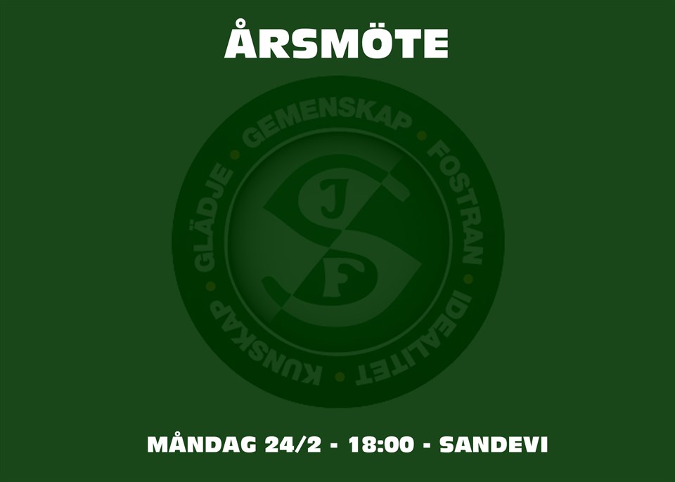 Sandareds IF bjuder in medlemmar till årsmöte. Mötet hålls på Sandevi måndagen den 24/2 klockan 18:00 på Sandevi. Motioner skall vara inlämnade till kansliet senast den 10/2. Varmt välkomna! Sandareds IF 21 jan 2020 0kommentarer